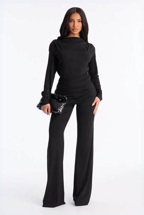 Women's Nara Ruched Backless Wide Leg Jumpsuit In Black Size Small | Fashion Nova