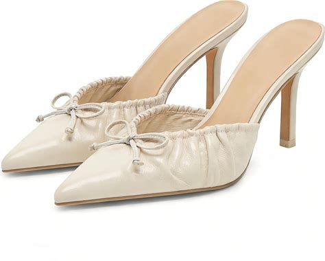 XBKXMK Kitten Heels For Women Bow Pointed Toe Heel Dressy Slip On Mules Trendy Sexy Stiletto Pumps Shoes