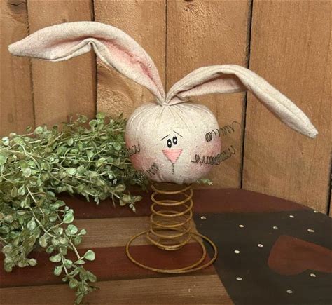 Primitive Country Bunny On Bed Spring - Rustic Spring Decor Shelf Sitter Rabbit Easter Garden