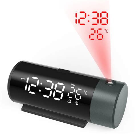 Projection Alarm Clock, Digital Clock With 180 Rotatable Projector, 5-Level Brightness Dimmer, Clear LED Display, USB Charger, Progressive Volume, 9Mins Snooze,12/24H, For Bedroom(With Projection Bed Shaker/Red Digits Red Projection)