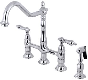 Kingston Brass Heritage Two-Handle 4-Hole Deck Mount Bridge Kitchen Faucet With Brass Side Sprayer Finish: Polished Chrome