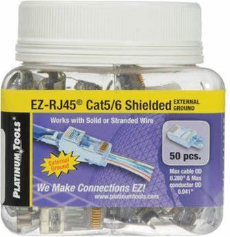 Platinum Tools Shielded EZ-RJ45 Connectors For Cat5e & CAT6 With External Ground (Jar Packaging, 50-Pieces)