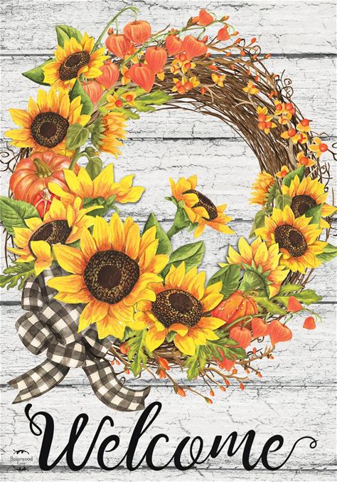 Briarwood Lane Sunflower Fall Wreath Welcome House Flag