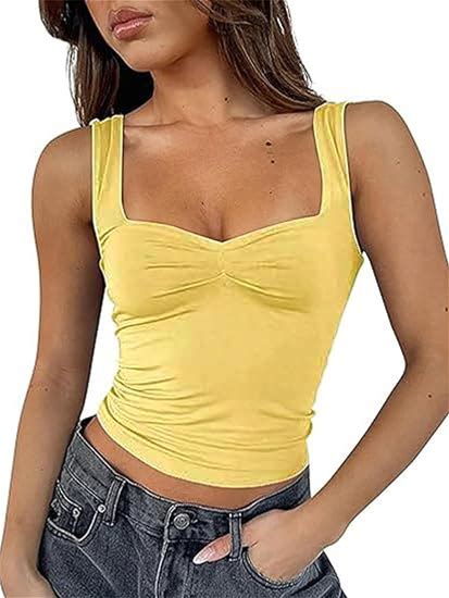 AURUZA Crop Tops For Women Sexy Sleeveless Deep V Neck Cropped Tank Top Y2K Plunge Ring Cleavage Crop Top Going Out Tops