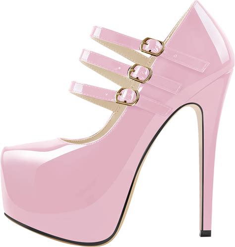 Onlymakerheels 15cm Platform Round Toe Patent High Heel Stiletto Ankle Strap Pumps