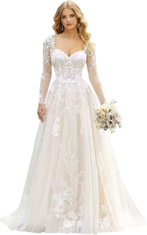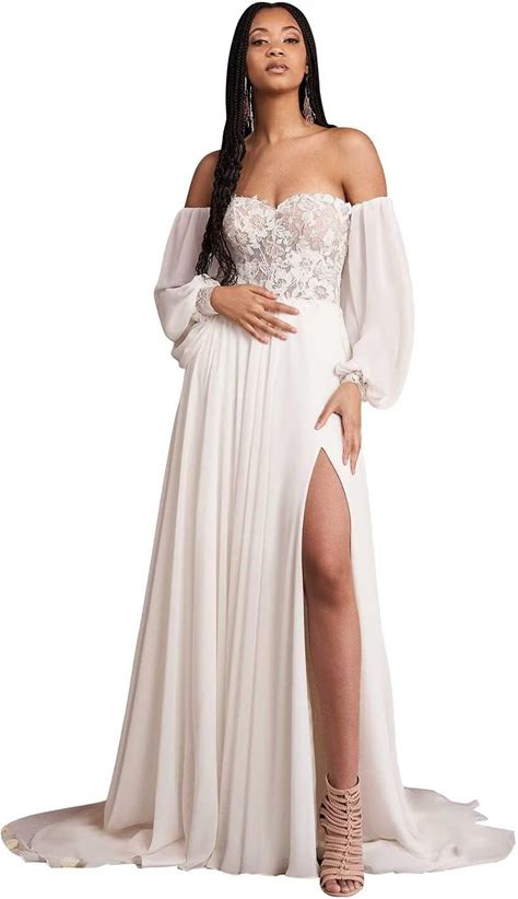 Findlovewedding Wedding Dresses For Bride With Lace Appliques Chiffon A Line Women Dress Long Sleeves Beach Bride Dress
