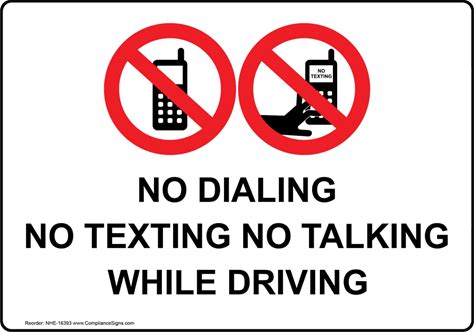 No Dialing No Texting No Talking While Driving Sign, Plastic | Size: 7X5, White, NHE-16393 | By Compliancesigns