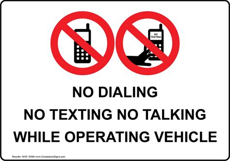 No Texting Talking While Operating Vehicle Sign, Plastic | Size: 7X5, White, NHE-16394 | By Compliancesigns