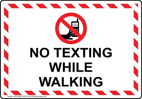 No Texting While Walking Sign With Symbol, Plastic | Size: 7X5, White, NHE-38659_WRSTR | By Compliancesigns