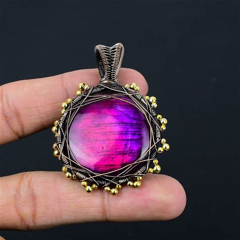 Pink Flash Labradorite Gemstone Pendant Copper Wire Wrapped Pendant Necklace Labradorite Pendant Jewelry Labradorite Jewelry Gifts For Her