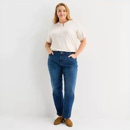 Liz Claiborne Lana Womens Plus High Rise Straight Leg Jean | Blue | Plus 24W | Jeans Straight Leg Jeans | Summer Fashion