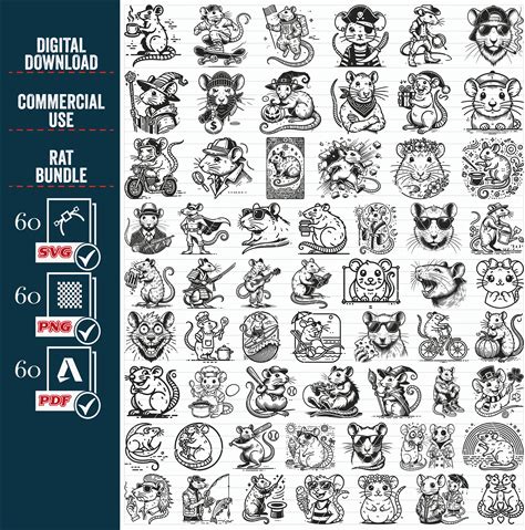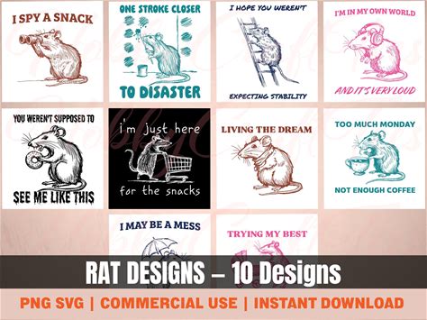 Rat Design Bundle PNG SVG, Funny Rat Clipart Set Digital Download, Mischievous Rodent Art For Cutting/Printing, Sublimation, Commercial Use