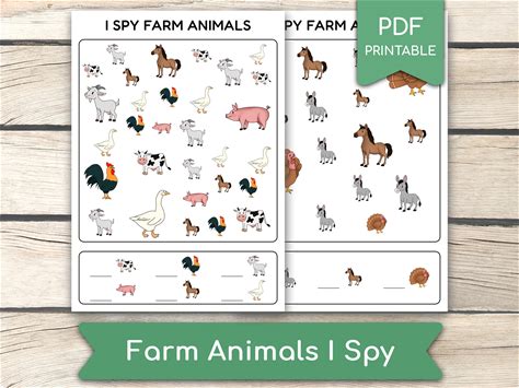 Farm Animals I Spy Worksheet, Farm Animals Activity, I Spy Activity, Educational Preschool, Busy Book Pages, Homeschool, Pdf Printables