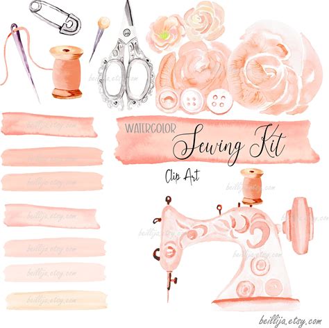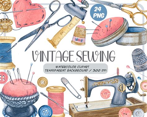 Sewing Tools Clipart, Seamstress Ephemera, Junk Journal (PNG, Instant Download)