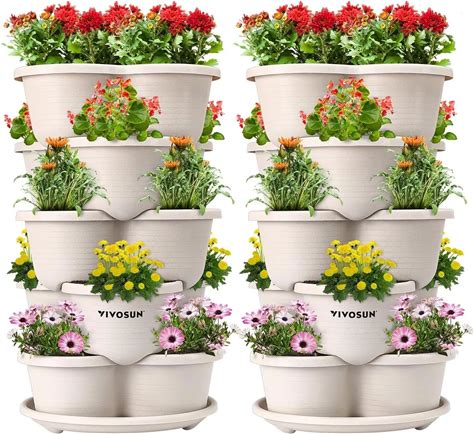 2 Set 5 Tier Stackable Planters Vertical Garden Pots For Strawberry Herb Flower And Vegetable Indoor