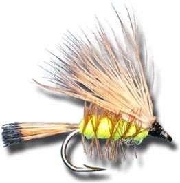 Palmered Caddis - Yellow Fly Fishing Flies - Size 14
