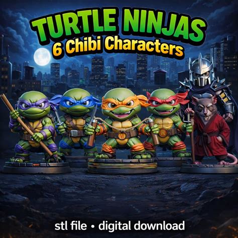 Turtle Ninjas - 6 Chibi Characters STL Bundle | 3D Print Files | Digital Download