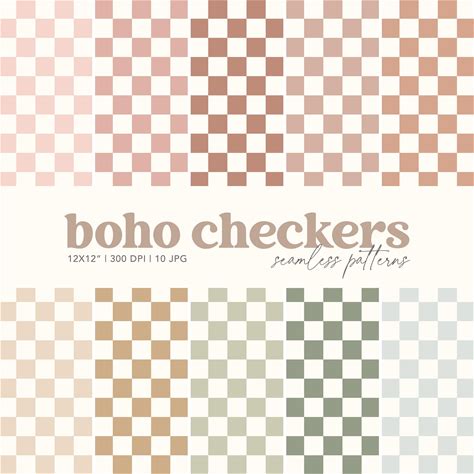 Boho Muted Checkers Seamless Patterns, Earth Tone Checks Repeating Pattern, Retro Muted Checkerboard Digital Paper Background