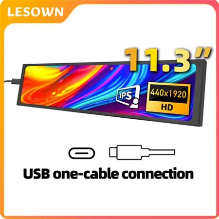 Lesown 11.3 Inch Ultra-Wide Bar Monitor Usb-C Aida64 & Raspberry Pi Secondary Screen 440X1920 IPS Strip Display CPU Temperature Monitoring Portable Ex