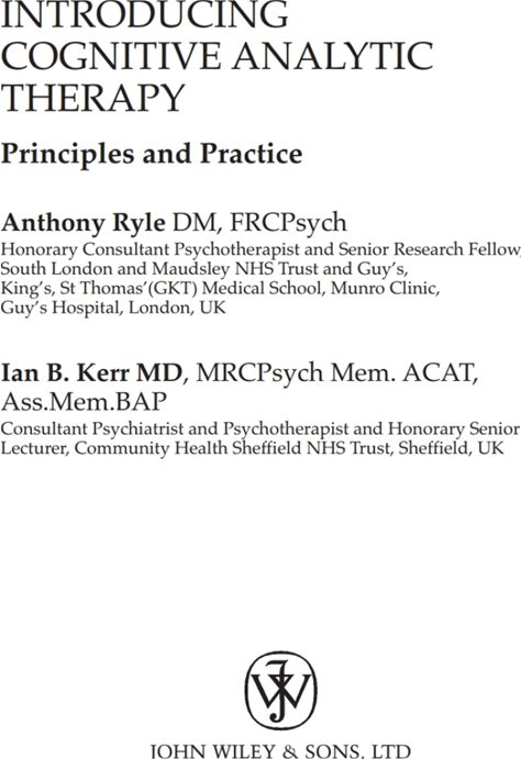 Introducing Cognitive Analytic Therapy: Principles And Practice By Anthony Ryle. Books. 9780471892731.