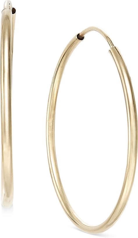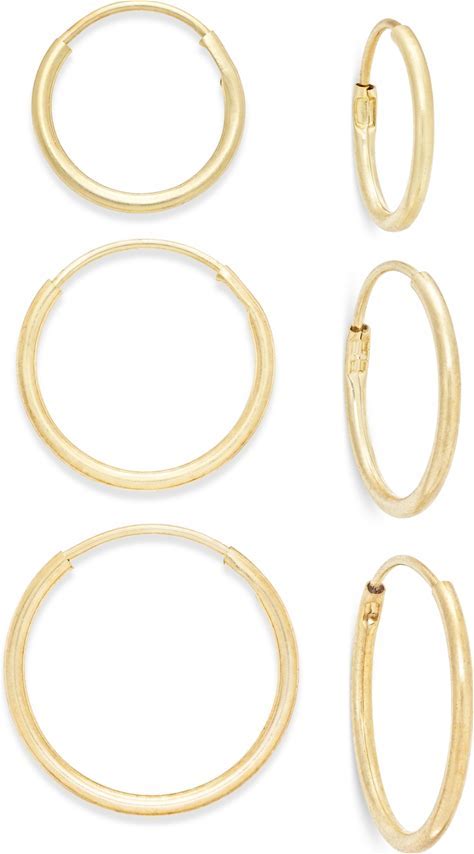 14K Gold Thin Continuous Endless Hoop Earrings, Two Pair Set Popular Small Sizes 10mm And 12mm Hoops
