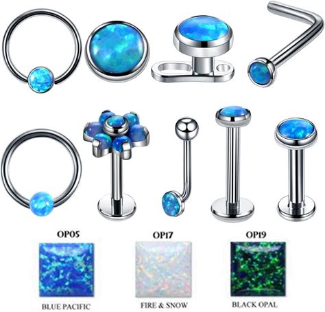 Lot 3Pcs Opal Stone Labret Monroe Lip Stud Ear Piercing Cartilage Tragus Helix Earring Nose Stud 16G