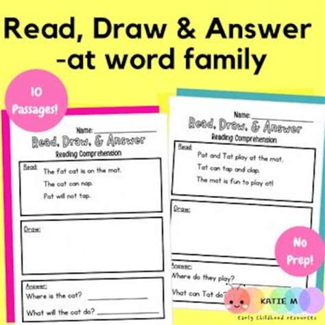 At Word Family Phonics Pack, Read Draw Answer (Printable Worksheets)